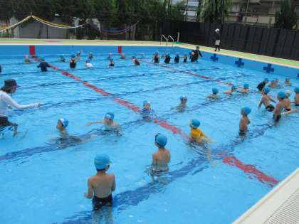 肩まで水につかったり,口から息を吸って鼻からブクブクと吐く練習をしたりしました。バディの友だちができているかを確認し合ったりもしました。