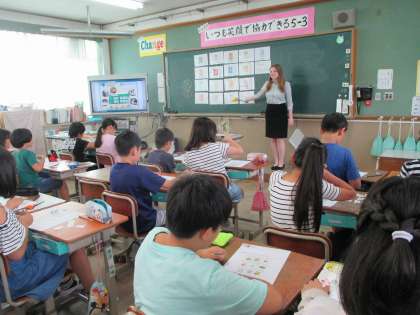 5年生は、グリーン先生と一緒に時間割と曜日の学習をしました。