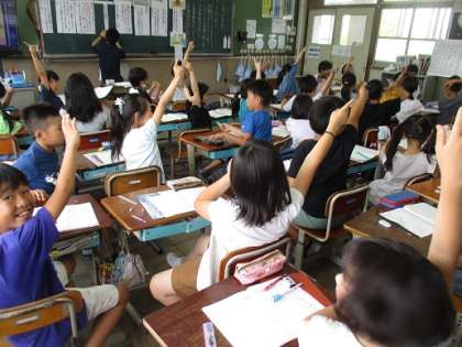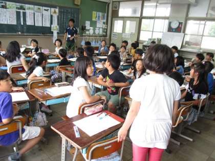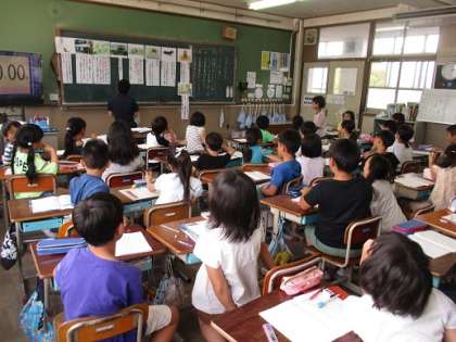 物語文「もうすぐ雨に」の9つの場面を,起承転結の4つに分ける学習をしていました。3年生はいつも発言する人の顔を見て,しっかり話を聞くことができています。