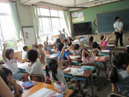 3年生のみんなは「もうすぐ雨に」のお話が大好きで,誰のセリフや気持ちなのかがすぐにわかるようです。今日はたくさんの先生が見に来られる授業でしたが,発表の手もたくさん挙がって主体的に学習をする様子が見られました。