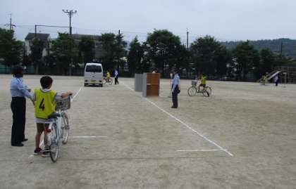 自転車の交通ルールとマナーについて,実際に自転車を運転する実技試験と筆記試験が行われました。受講した人は,後日,自転車運転免許証がもらえます。楽しみですね。