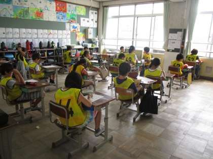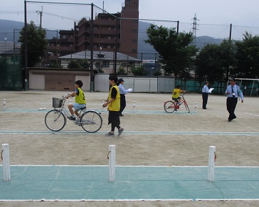 4年生の自転車安全教室がありました。山科警察署や地域の方のご協力を受けて,安全な自転車の乗り方について学びました。
