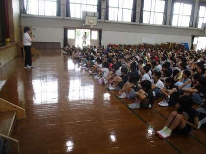 その後,諌山先生から6月の生活目標の振返りと,7月の生活目標「トイレのスリッパをそろえよう」についてのお話がありました。