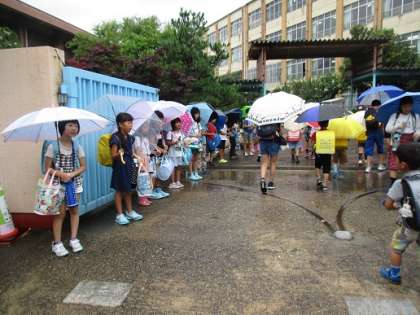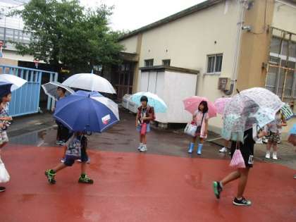 今日のあいさつ運動は3年1組でした。雨の中でのあいさつ運動でした。はじめは大きい声を出すのが恥ずかしい様子でしたが,だんだん元気なあいさつができるようになってきました。
