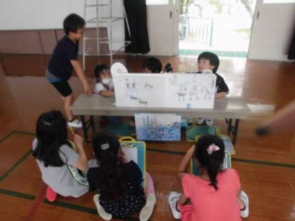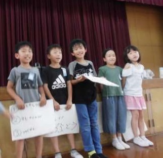 2年生は体育館に集まり,「大すき わたしの町」の発表会をしました。これまで8時間かけて準備してきたものの集大成です。ペープサートや紙芝居,クイズなど,グループごとに工夫が盛りだくさんの発表でした。お互いに一生懸命発表したり,聞いたりできました。