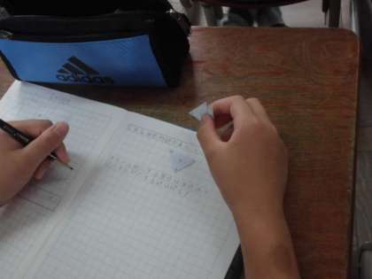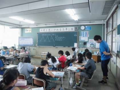 5年生の算数では合同について学びます。3つの図形でそれぞれ対応する角や辺を調べていきます。配られた紙を実際に重ねていくと,どことどこが対応するのかが明確になりました。