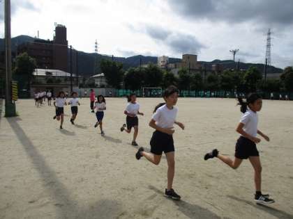 5年生は体力づくりのために,週2回の朝マラソンをしています。日差しが強い朝でしたが,めあてに向かって走る姿が素敵でした。