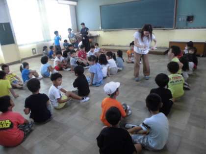 運動会の低学年のリレー選手が集まって,走る順番を決めています。