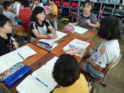 司会になった人は,「この意見についてどう思いますか?」「どんな理由でそう思いましたか?」など考えを深めたり,広げたりすることにチャレンジしています。