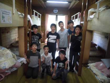 フライングディスクゴルフの後,一人1枚シーツをもらって部屋へ行きました。夕食まで少しの間休憩です。