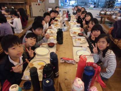 みんなで食べる朝食はおいしいね。