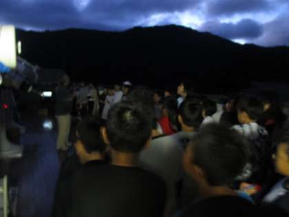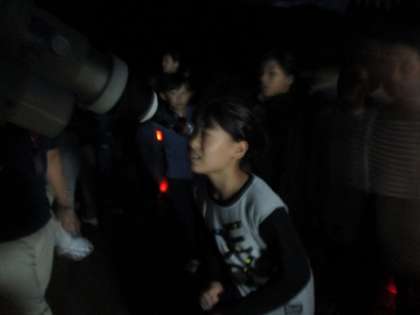 18時45分からは天体観測でした。夕食後から空には雲が広がり,星や月が隠れてしまいました。時折姿を見せる月を天体望遠鏡で見ることができたグループもありました。山の家の方からは,北極星がある「おおくま座」にまつわるギリシャ神話を教えていただきました。