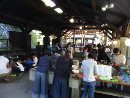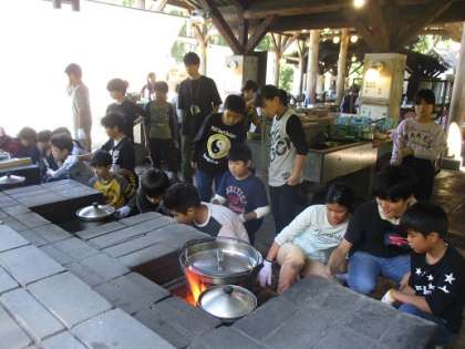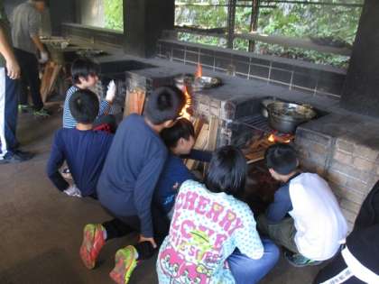 かまどに火をつけていきます。薪の組み方が難しく,火を起こすのが大変でした。