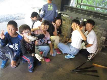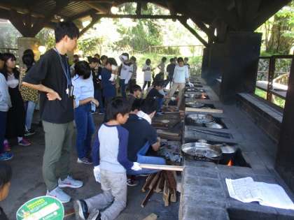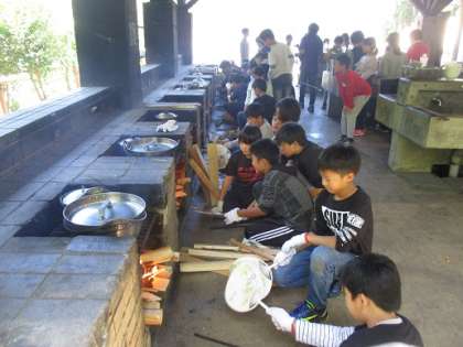 「けむりで目が痛い。」「じゃがいもがなかなか柔らかくならない。」「ご飯の水が少なすぎた。」など,苦労しながら野外炊事をした班もありました。