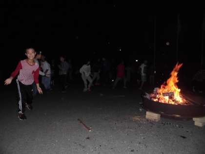 次に「きこりとりす」をしました。罰ゲームは担任の先生の名前を入れて「○○先生,大好きでーす!」と叫ぶことです。