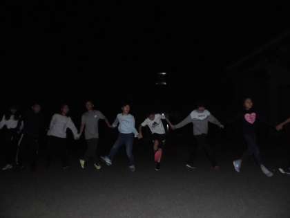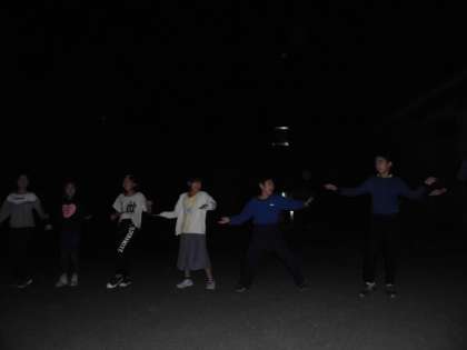 次に先生たちから「山の家の日記」の出し物があり,最後にみんなで「マイムマイム」を踊りました。たくさん体を動かしてたくさん笑った,とても楽しく心に残るキャンプファイヤーになりました。今日は仲間とたくさん「協力」しましたね。