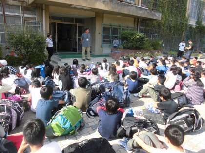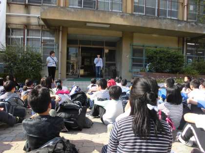 山の家を出発した5年生は,午後3時過ぎに小野小学校に帰ってきました。たくさんのお迎えの保護者に見守られて,解散式が行われました。