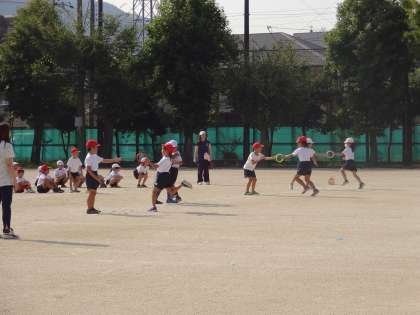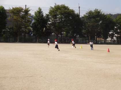 バトンを一生懸命を握って走っていました。走る順番やコースを確認して,すごく頑張っていました。