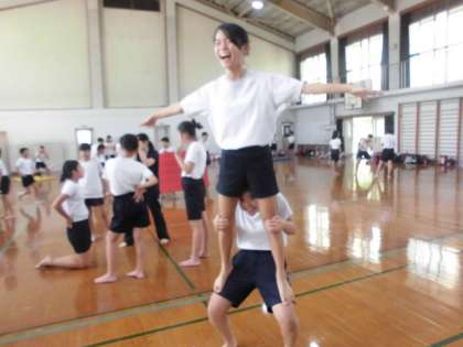 組体操練習もいよいよ大詰め。多くの技の成功率が上がりました。最後まで技の向上に手は抜きません。