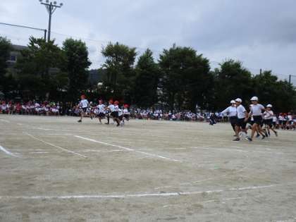 たてわり競技「なわとびリレー」の様子です。