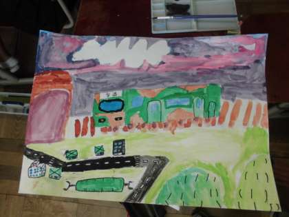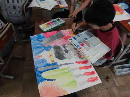 いよいよ作品も完成に近づいてきました。絵の具で丁寧に色を塗っていきます。