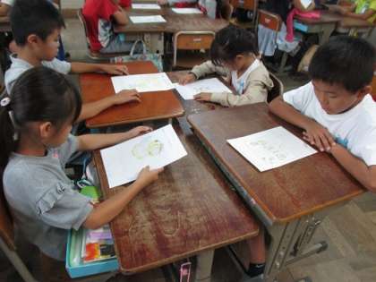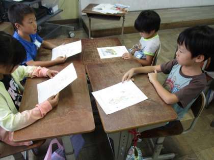 2年生は,1年生と3年生から読書ゆうびんを受け取りました。一人1枚ずつ読書ゆうびんを持ち,真剣に読みます。読んだものは交換して,全員が受け取った読書ゆうびんを全部読めるようにしていました。