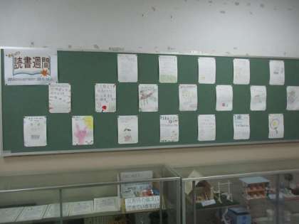 中央玄関の掲示板に,図書委員のおすすめの本紹介が掲示されています。「月夜にドッキリ」「地球動物図鑑」「IQ算数・数学クイズ&パズル」など,いろいろな種類の本が紹介されていていまうす。どの本も読みたくなりますね。
