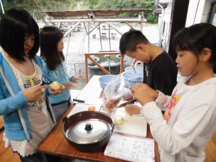 夕食は初めての野外炊事に挑戦しました。今日のメニューはカレーです。