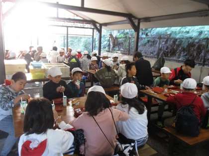 みさきの家は朝からいいお天気です。全員元気に起床しました。今朝は野外炊事場で朝食をとりました。