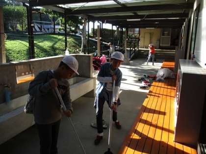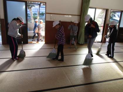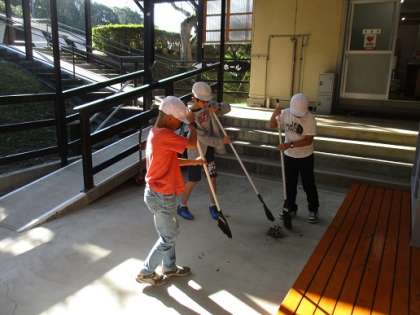 各班のリーダーが,2日間使った90畳の掃除をしました。。「来た時よりも美しく」を心がけて,丁寧に床を掃いたり雑巾で棚をふいたりしました。