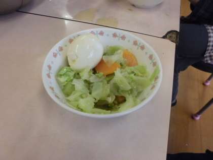 「カラフルコンビネーションサラダ」と「ゆで卵」を作りました。水から茹でるのかお湯から茹でるかを確認しながら野菜を茹でました。ドレッシングも手作りです。手を合わせていただきます!