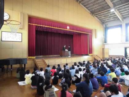 11月の朝会がありました。スポーツや絵画,作文で表彰された人の紹介や今月の生活目標についてのお話がありました。