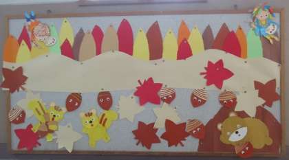 中央玄関や1階廊下の掲示物です。季節を感じられる掲示が工夫されています。