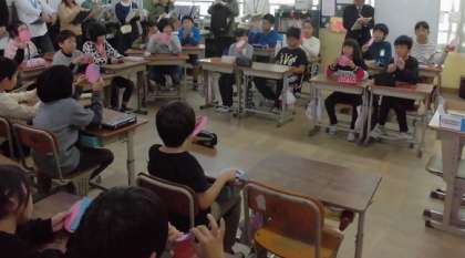 自分の意見や考えを相手に伝えるとことや,自分と違う友だちの意見を理解しようとすることの大切さについて考えました。一人一人が自分の考えを表すために心情スケールを使ったり,グループの意見をホワイトボードに書いて交流したりしました。