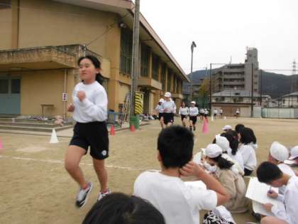 持久走の練習にも少しずつ慣れてきました。自分のペースを保ち,ゴールを目指します。
