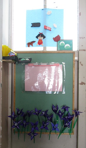 下の しゃしんは,きゅうしょくしつの まえの けいじばんです。
