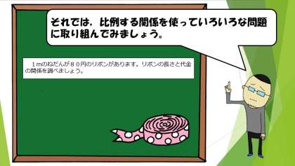 比例の関係を使って,もう一方の値を求めてみましょう。どう考えればいいのかな。