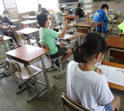 6年生は,家庭で学習した課題の答え合せをしたり,社会科プリントに取り組んだりしました。
