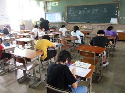 6年生は算数の時間に,角柱と円柱の展開図をかく学習をしました。