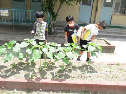 理科の時間に,インターロッキングや畑,中庭でこん虫を探しました。ありやダンゴムシ,ちょうちょがいました。畑のキャベツの葉のうらには青虫が6ぴきぐらいいるのを見つけました。