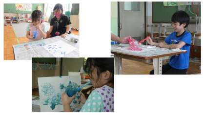 わかば学級図工 しゃぼん玉であじさいをかこう