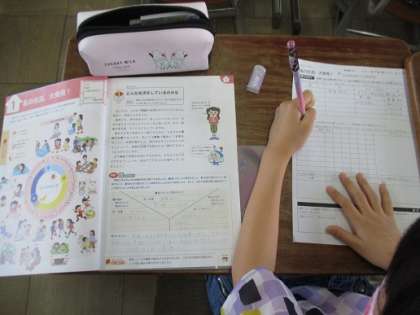 家庭にある仕事を調べることを通して,家族の一員としての役割を果たすことの大切さに気づき,家庭科の学習を通してどのようなことができるようになりたいかを考えました。
