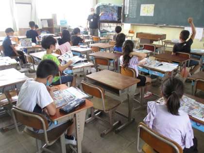 教科書のイラストを見ながら,まちの様子について知っていることや気づいたこと,疑問思ったことなどを出し合いました。その後,自分たちのまちの様子についても考えました。