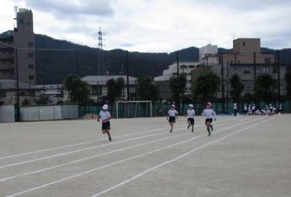 体育の時間に 50メートル走のタイムを はかりました。1年生のときより 力づよい走りが できていました。タイムは ちぢんだかな?