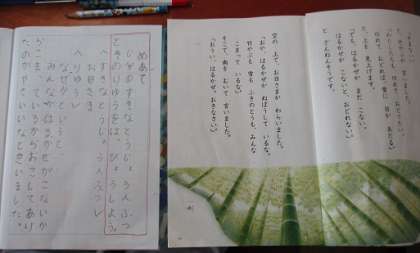 「ふきのとう」を読んで,すきなとうじょう人ぶつと そのわけをノートに書いて,こうりゅうしました。