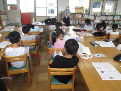 図書館司書の先生から,図書館オリエンテーションをしていただきました。本の扱い方や探し方などについて,詳しく教えていただきました。これからも本を大切にしてたくさん読んでくださいね。