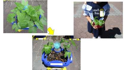 そだてている あさがおが せいちょうして,はのかずが ふえてきたので まびきを しました。まびきをしたなえは ぎゅうにゅうぱっくに いれて もってかえります。おうちでも たいせつに そだててくださいね。