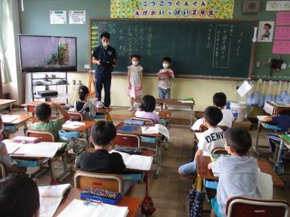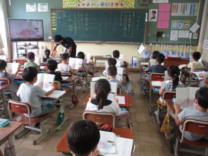 今日は,「スイミー」をはじめて読んだ かんそうを 書きました。お話を読んで,思ったことや気づいたこと,お気に入りのばめんを わけもあわせて 書きました。2人のお友だちが 前でかんそうを はっぴょうしてくれました。