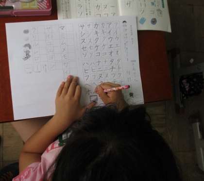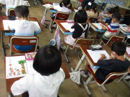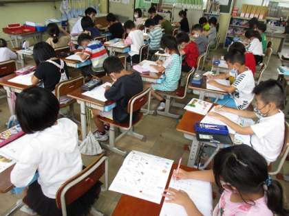 書写の時間に かたかなの れんしゅうをしました。書きじゅんや字の形,はらい・とめに気をつけて,ていねいに 書きました。しずかに 集中して れんしゅうできましたね。