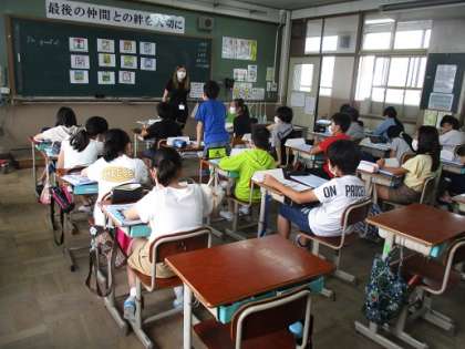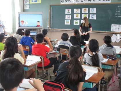 英語での会話をしているビデオを見て,得意なことを伝える表現が「I'm good at 〜.」であることを知りました。その後,チャンツを言ったりチェーンリレーをしたりして,「I'm good at 〜.」の表現に慣れていました。